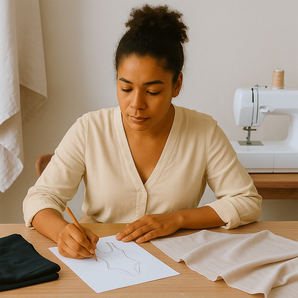 Avec une modéliste basée à La Réunion et des ateliers partenaires spécialisés, on a fait, refait, et corrigé jusqu’à obtenir le modèle que j’aurais voulu avoir dans mon tiroir il y a 5 ans.